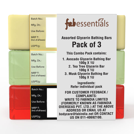 Assorted Glycerin Bathing Bars with Avocado, Tea Tree & Musk - 100 gm X 3