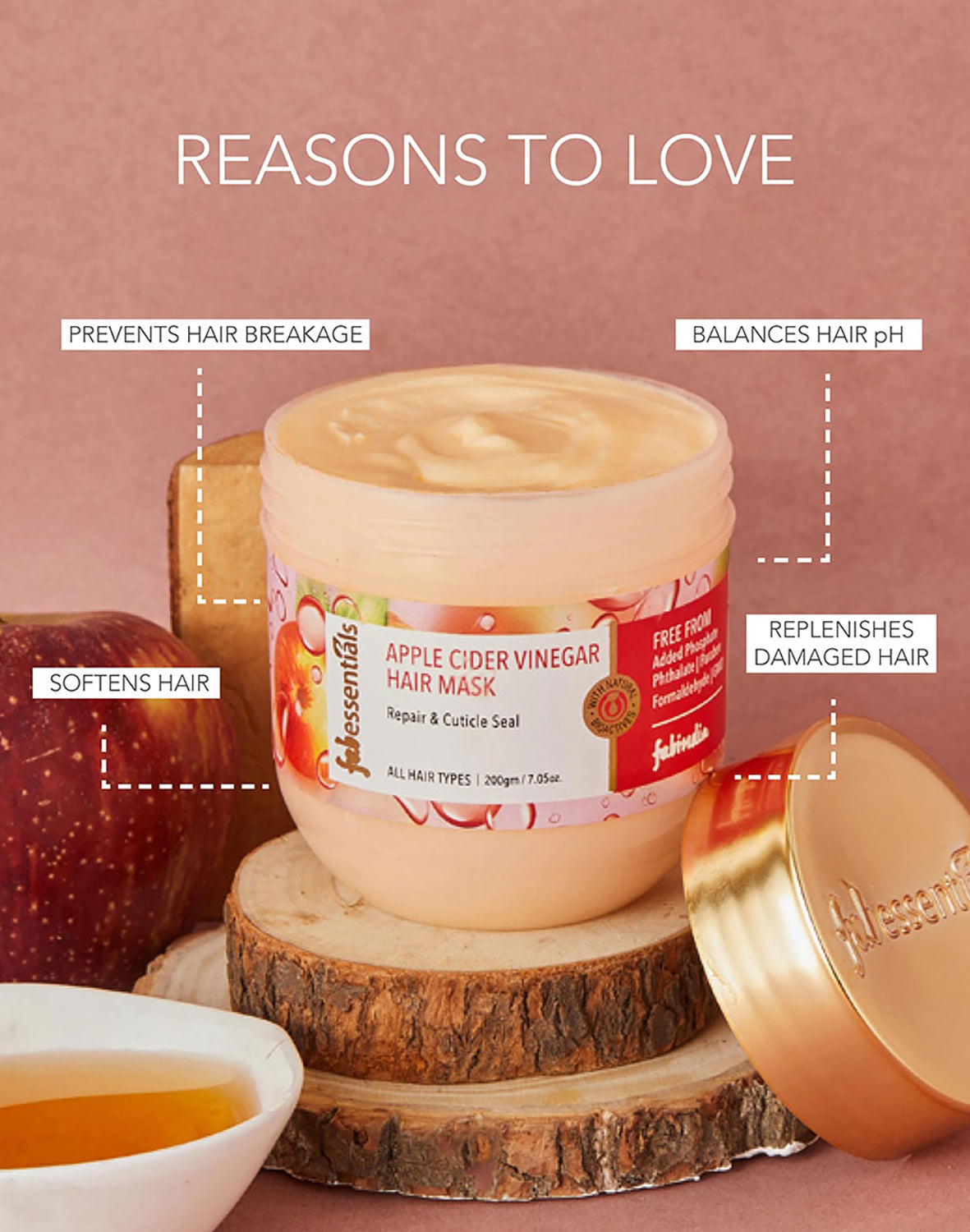Fabessentials Apple Cider Vinegar Hair Mask restores essential hydration and natural vibrancy to dry, brittle, over-processed and lackluster locks. Like a moisturizing drink for thirsty manes, it’s formulated with unique combination of Organic Apple Cider Vinegar containing an optimal blend of transformative nutrients to replenish damaged hair and leave it shiny, glossy and healthy-looking. It’s safe for color, keratin and chemically treated hair.