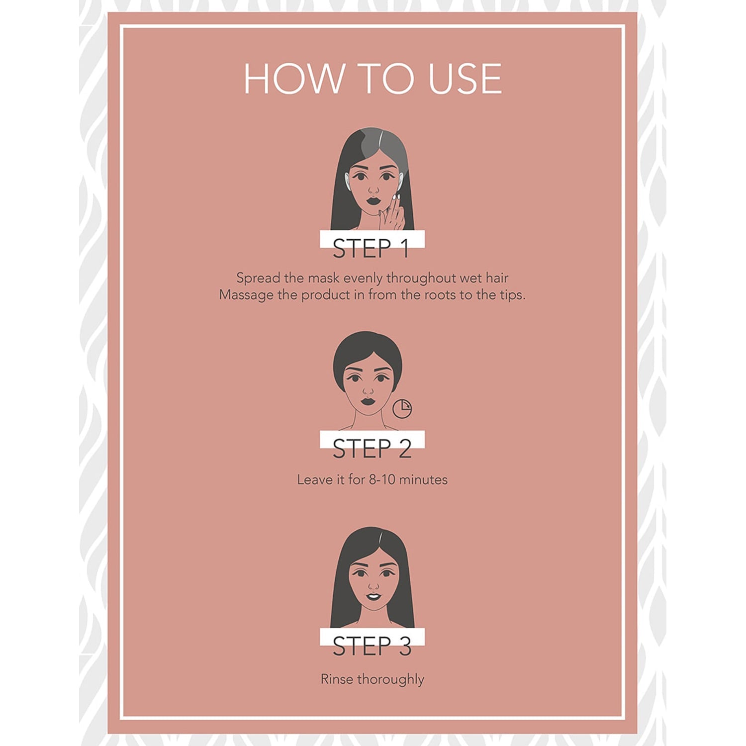 Thoroughly wet the hair & spread the mask evenly throughout the hair. Massage it in from the roots to the tips. Leave it for 8-10 minutes, Rinse off the hair completely.