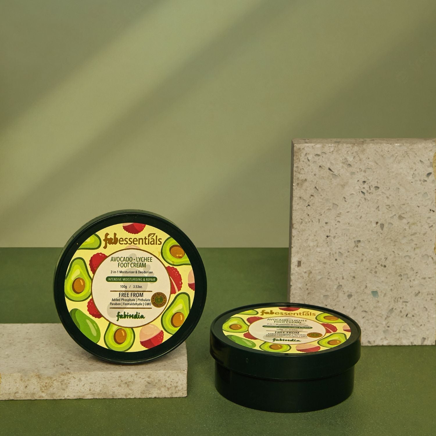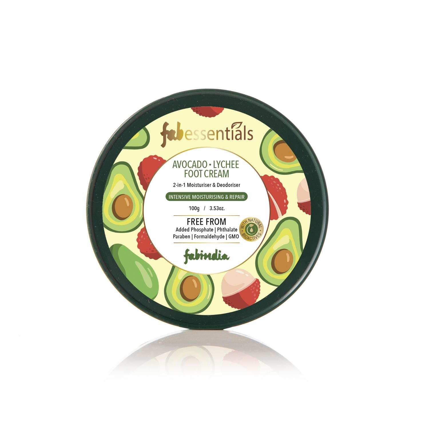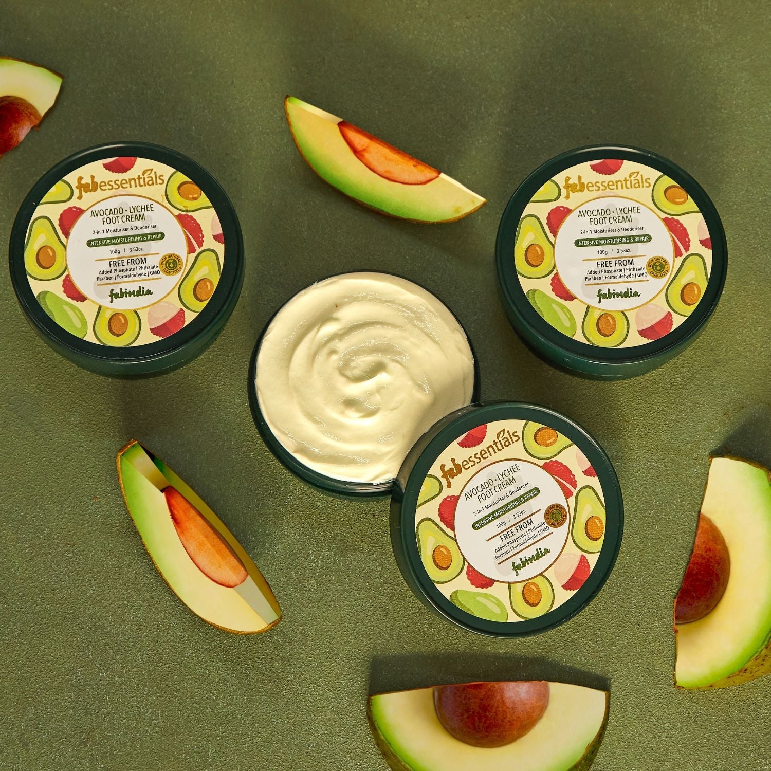 Fabessentials Avocado Lychee Foot Cream is a must have for tired and dry feet. Rich in nutrients and free of nasties, this is a 2-in-1 moisturizer and deodorizer, which is made with natural bioactive and enriched with the goodness of Avocado Oil, Shea Butter, Lychee Extract and Jojoba Oil. This Foot Cream moisturizes and hydrates, softens and smoothens skin, and helps repair cracked heels & removes Oduor from feet.