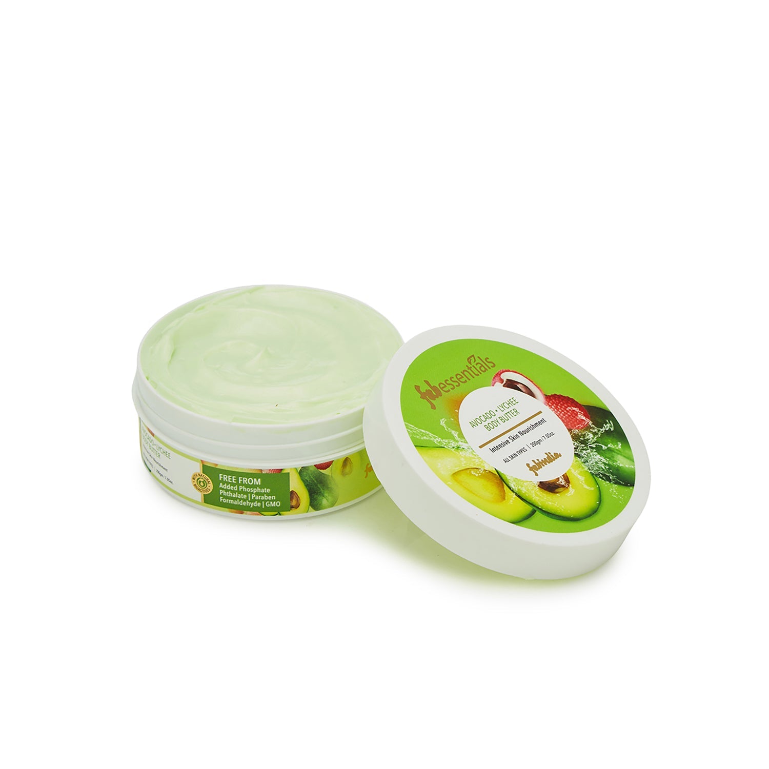 Fabessentials Avocado Lychee Body Butter, enriched with antioxidant-rich ingredients, whipping up a skin-smoothing veil of moisture, this body butter delivers a soft and supple finish. The ultra-rich balm like texture soothes dry skin patches, as well as feeds dehydrating skin, lips and feet. This luxurious butter is brimming with the goodness of antioxidant-rich Lychee Extract to give a boost of antioxidants, Vitamin E rich Avocado Oil to grant a deeply moisturizing veil, shea butter to lend an abundance of skin-loving vitamins & Niacinamide to contribute to everyday brightening that the skin needs. Expect beautifully smooth skin and a satin glow!