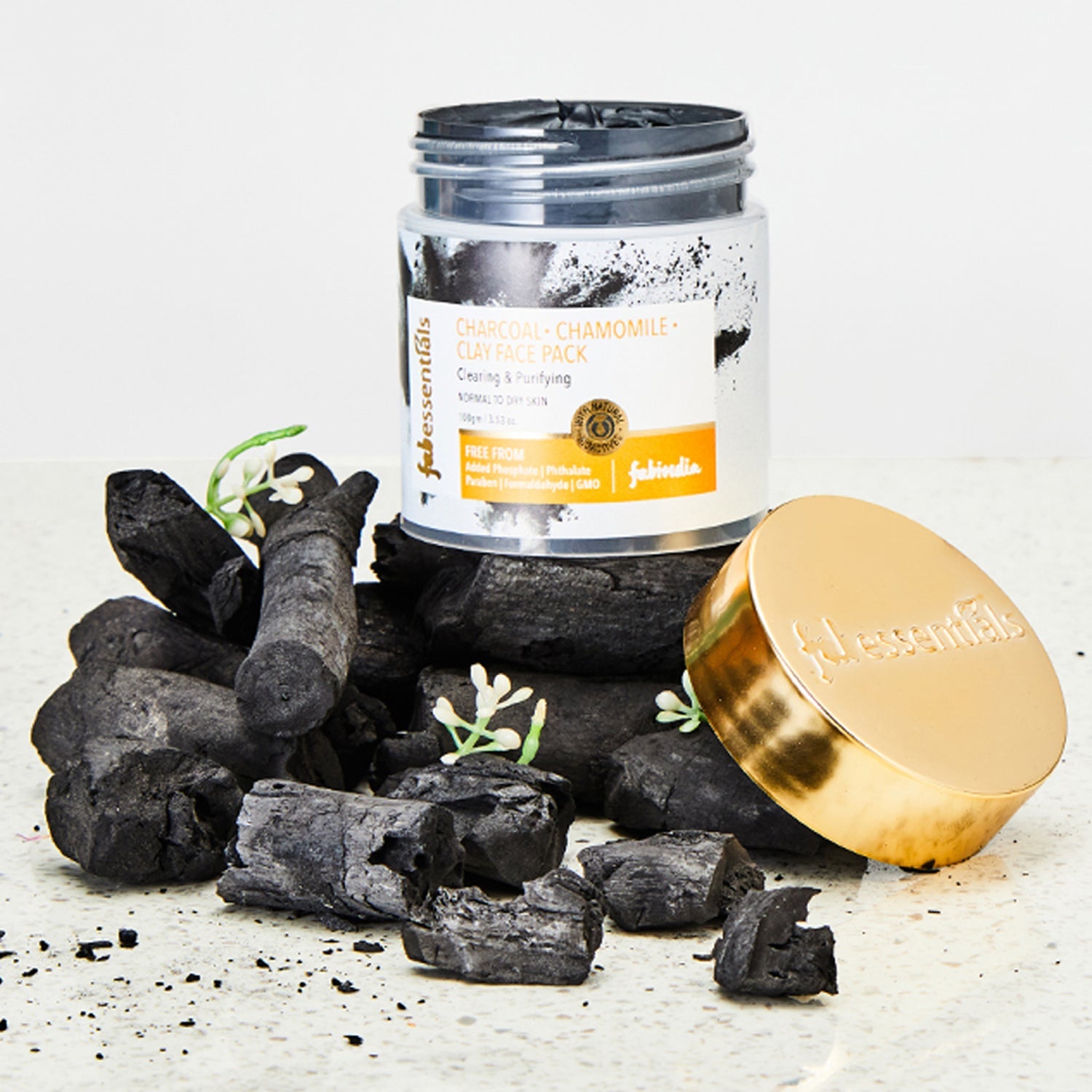 Fabessentials Charcoal Chamomile Clay Face Pack is free from nasties. Made with Bamboo activated charcoal and Kaolin, it draws out deep-dwelling impurities and reduces the appearance of pores. The blend of Kaolin Clay and Bentonite controls excess oil, clears clogged pores and controls future breakouts, while Chamomile extract is known to protect the skin from bacteria and prevent further acne & blackheads. Bentonite alleviates redness, irritation and helps restore skin's natural barrier.