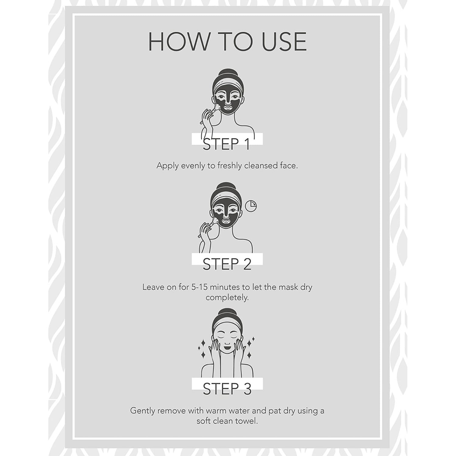 Apply evenly to freshly cleansed skin. Leave on for 5- 15 minutes to let the mask dry completely. Gently remove with warm water and pat dry using a soft clean towel. Use 2-3 times a week if you have oily to combination skin, or 1-2 times weekly if you have normal to dry skin.