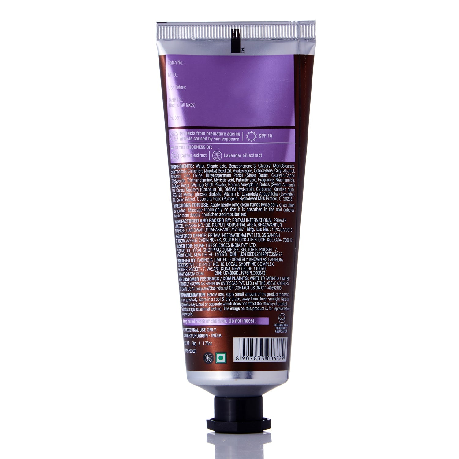 Fabessentials Coffee Lavender Hand Cream is enriched with the goodness of Coffee extract and Lavender Oil that moisturizes and conditions hand and nails. With SPF 15, this protects from premature ageing affects caused by sun exposure. Truly a treat for your hands, keeps your hands soft, supple and hydrated.