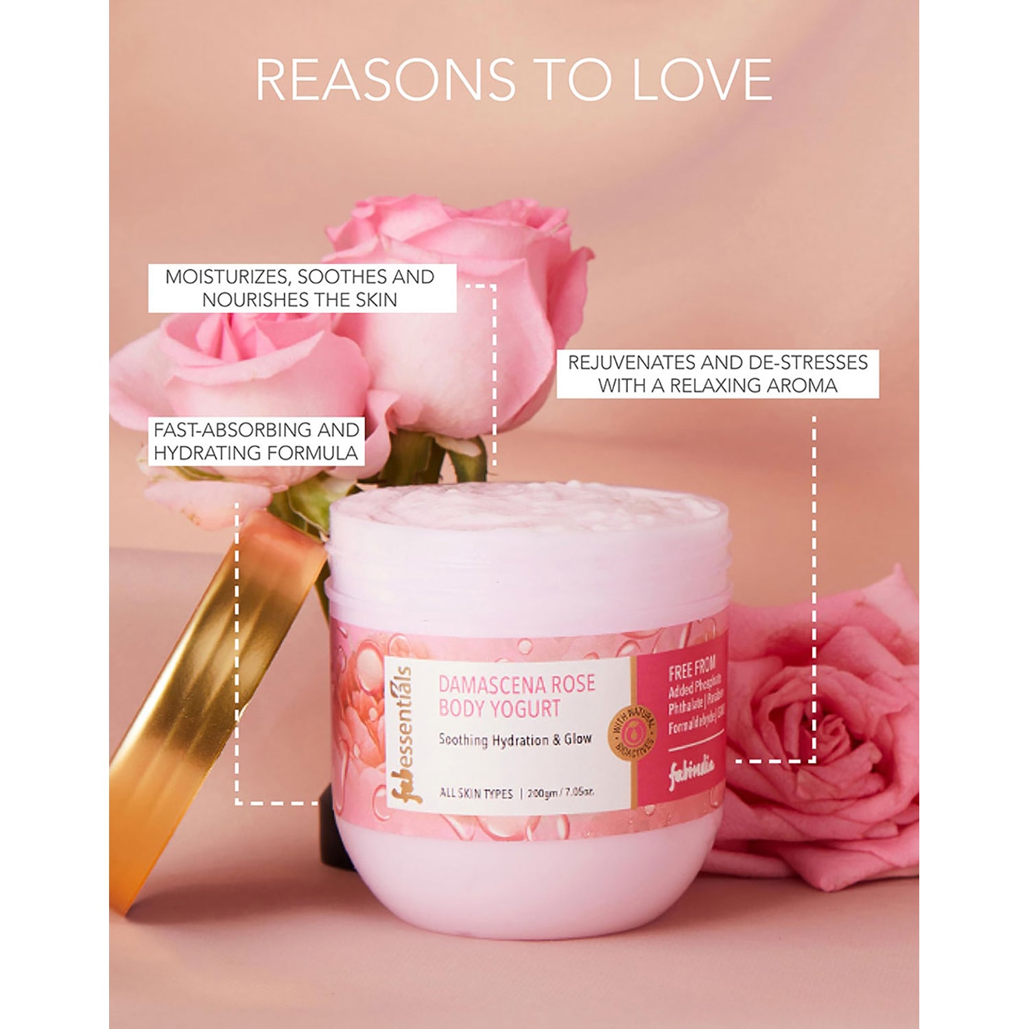 Fabessentials Damascena Rose Body Yogurt is suitable for all skin types. It moisturizes, smoothes, nourishes and protects skin from excessive dryness. It is a fast-absorbing and hydrating formula with a texture that will leave you feeling mesmerized. Loaded with the goodness of Shea Butter, Glycerin and Rose Water, this body yogurt rejuvenates and de-stresses with the relaxing aroma of fresh cut roses. The texture is so smooth, you will fall in love with it – and all this without any toxins or harmful chemicals!
