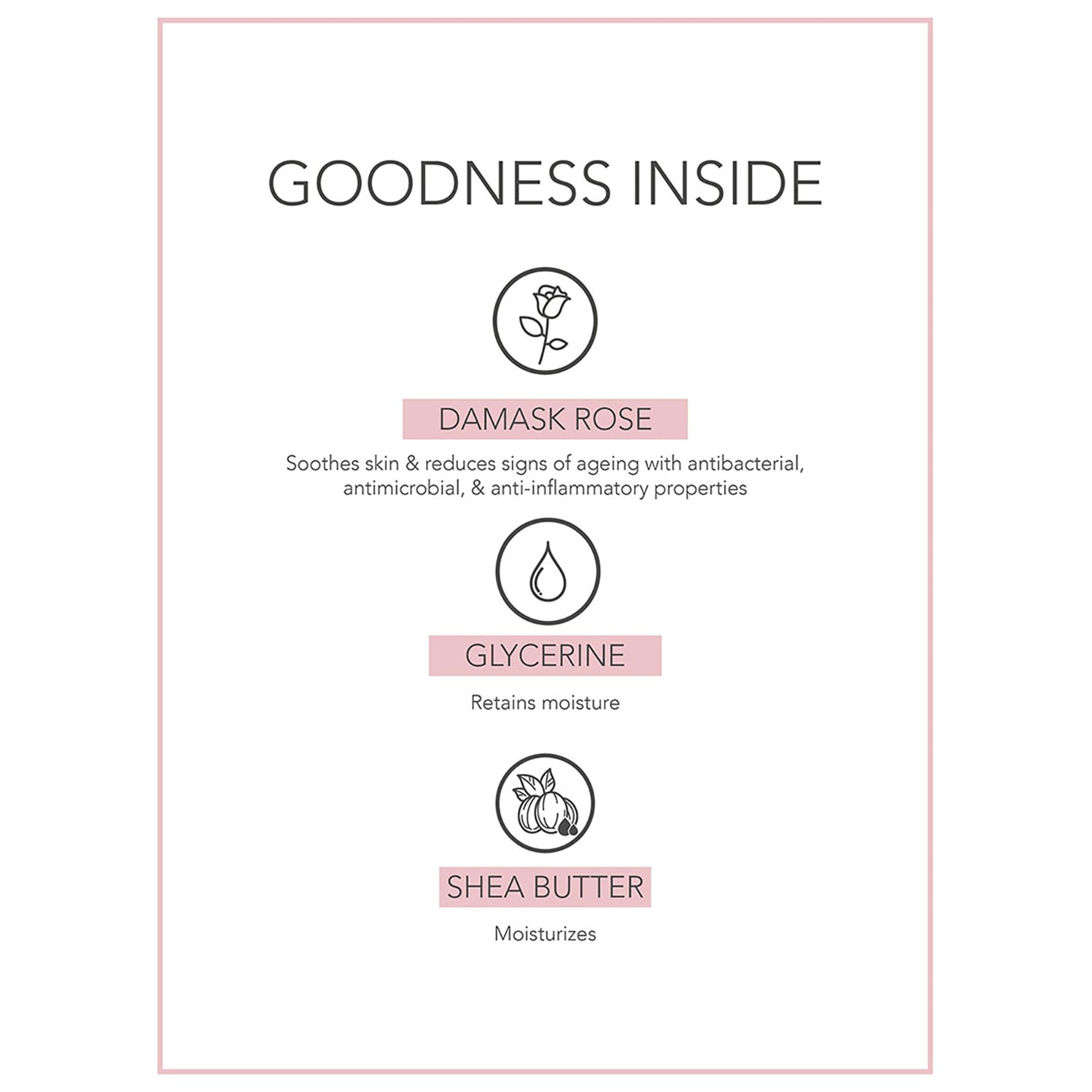 Glycerin, Butyrospermum Parkii (Shea) Butter, Theobroma Cacao (Cocoa) Seed Butter, Allantoin, Niacinamide, Rosa Damascena (Damask Rose) Flower Water, Tocopheryl Acetate (Vitamin E)