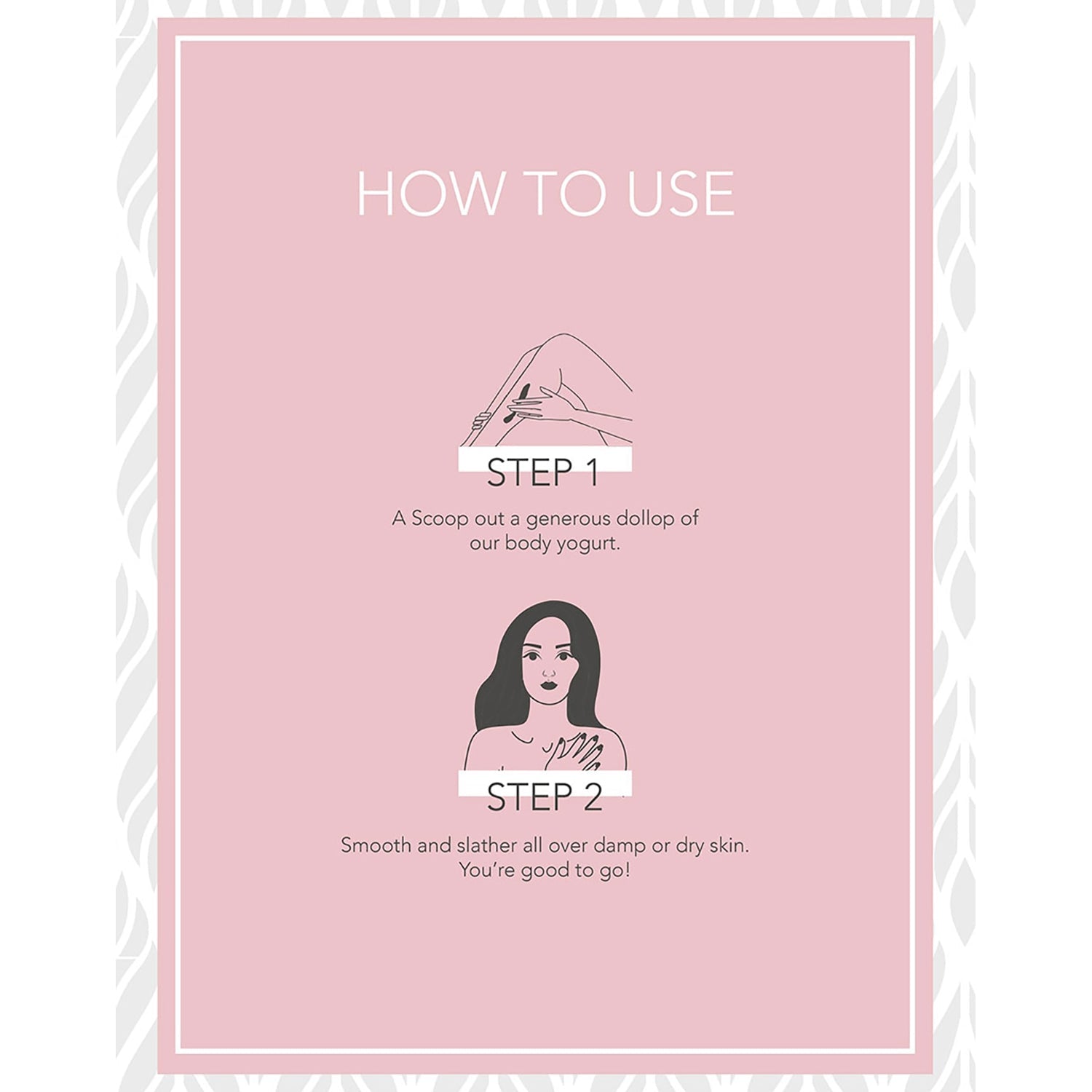Scoop out a generous dollop of this body yogurt. Smooth and slather all over the damp or dry skin. There’s no need to wait around – it sinks straight in. You’re good to go!