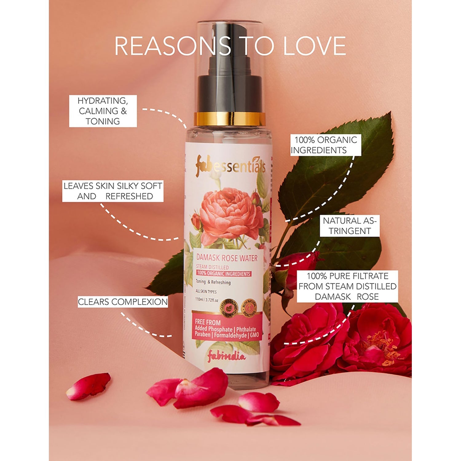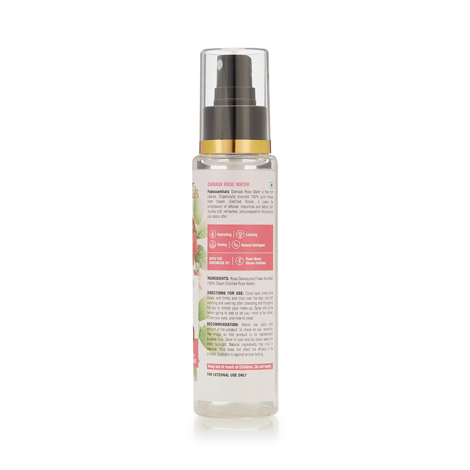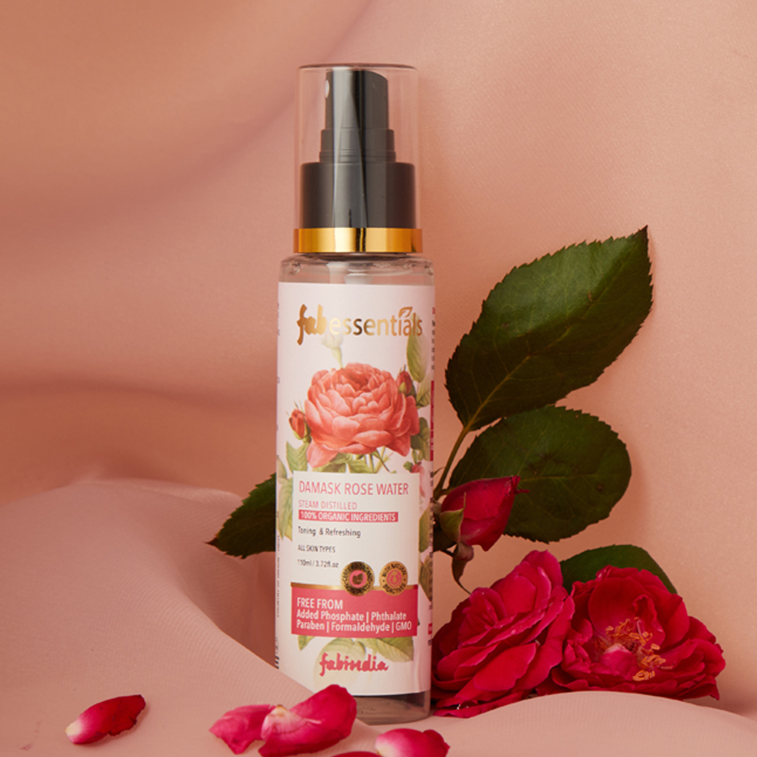 Fabessentials Damask Rose Water is free from nasties. Organically sourced 100% pure filtrate from Steam Distilled Roses, it clears the complexion of leftover impurities and debris. Skin is silky soft, refreshed, and prepped for the products you apply after.