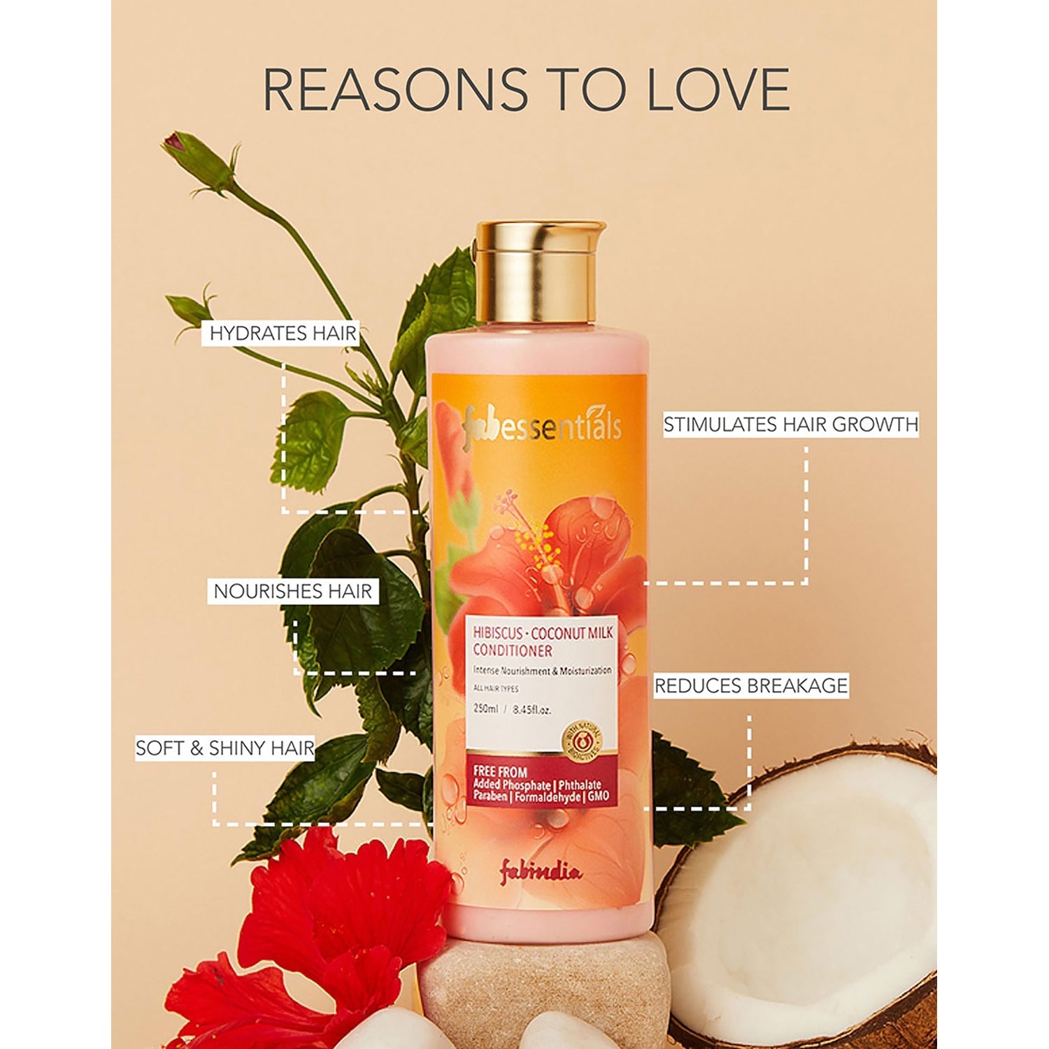 Fabessentials Hibiscus Coconut Milk Conditioner is a restorative, ultra-hydrating conditioner that replenishes moisture, repairs damage and protects against future breakage and color fade. Rich with nourishing coconut oil, it provides intensive nourishment to your hair & helps promoting overall hair health. The Hibiscus extract acts as an effective natural hair conditioner and an exceptional moisturizer that heals the dry and itchy scalp.