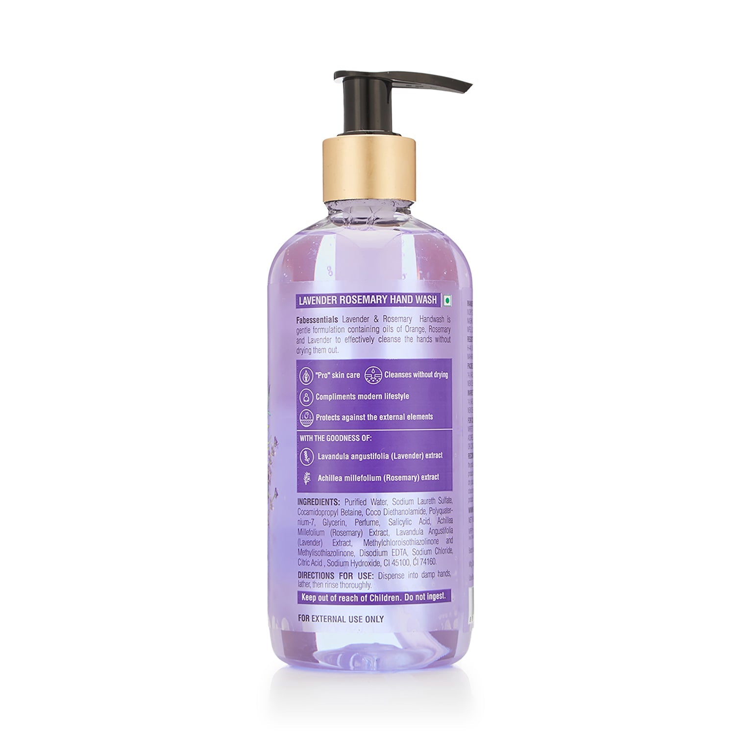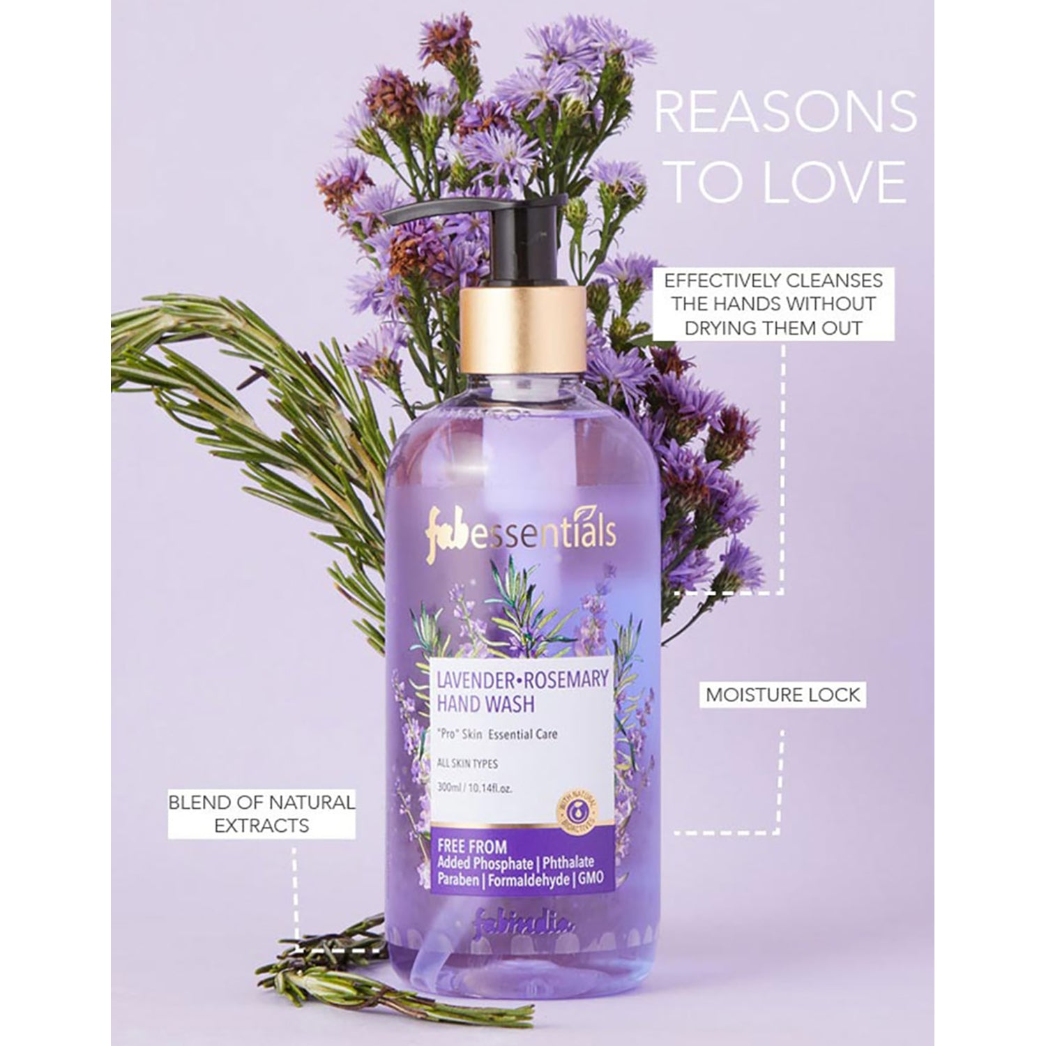 Fabessentials Lavender & Rosemary Handwash is gentle formulation containing oils of Orange, Rosemary and Lavender to effectively cleanse the hands without drying them out.