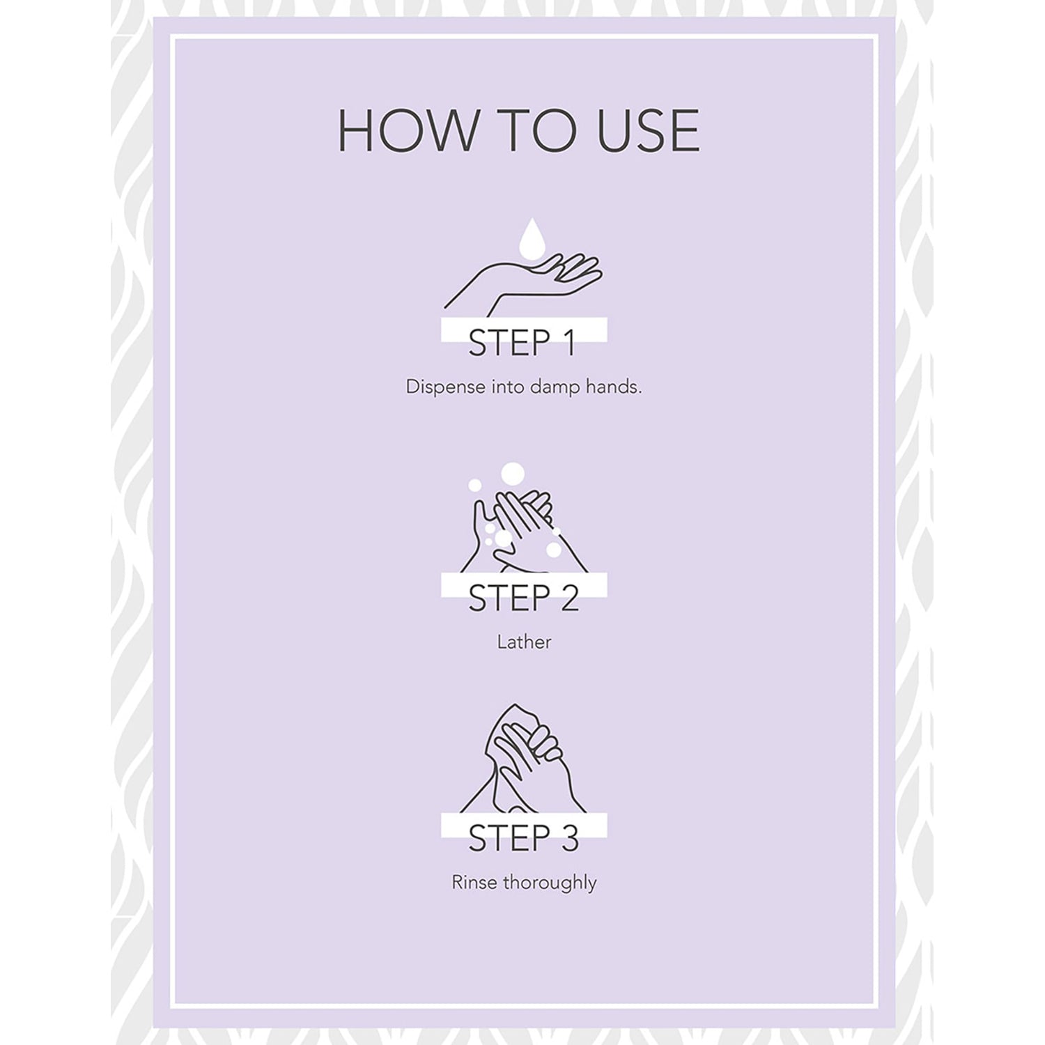 Dispense into damp hands, lather, then rinse thoroughly.