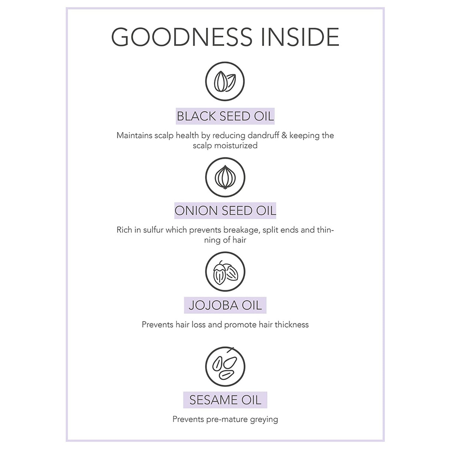 Fabessentials Red Onion Black Seed Oil is a blend of nourishing oils such as Black seed oil, Argan oil, Bhringraj oil, Jojoba oil, Coconut oil and more to help reduce hair fall and boost hair growth. This recipe contains Onion juice which is known to promote hair growth by boosting the level of an antioxidant enzyme Catalase. It is also rich in Sulfur which nourishes the hair follicles & minimizes hair thinning and breakage. This oil with antibacterial properties keeps the scalp healthy and free of infection.