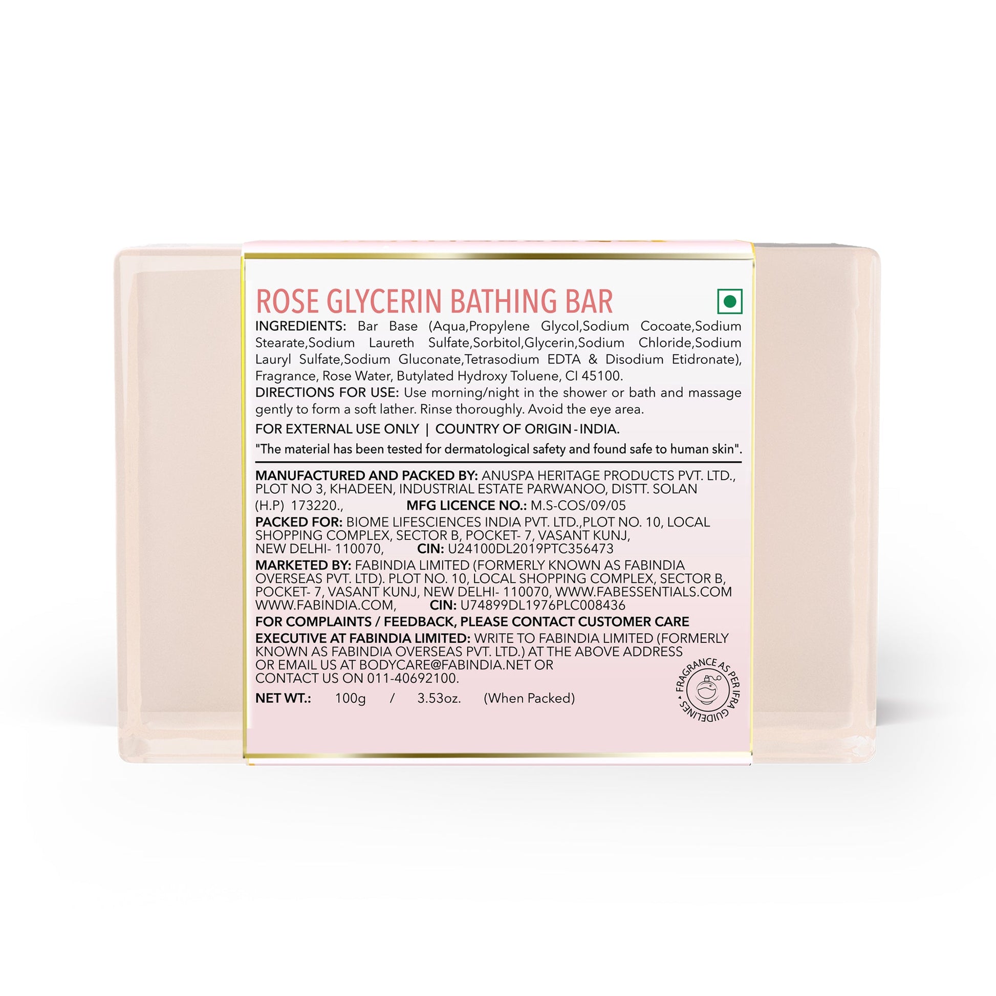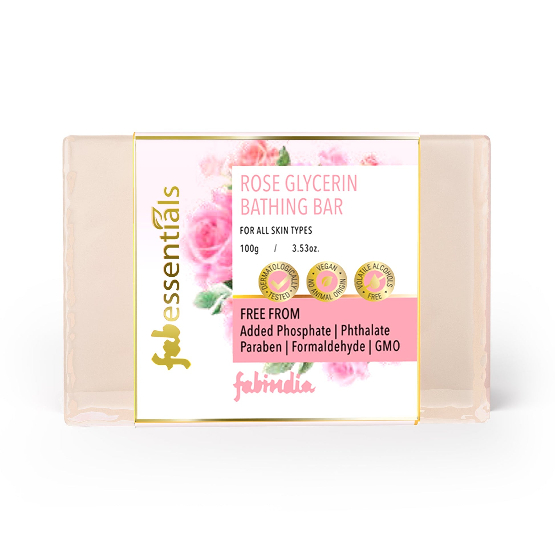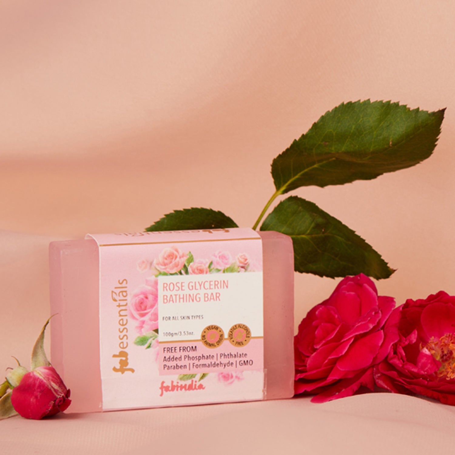 Fabessentials Rose Glycerin Bathing Bar is infused with the goodness of Rose and Glycerin. Free from toxins, this soap gently cleanses away dirt and grime from your body while retaining skin's natural moisture balance. Rose is known to be rich in vitamins, antioxidants, and minerals and works fantastic in tackling dry skin, while Glycerin hydrates and moisturizes skin, and banishes dryness and roughness.