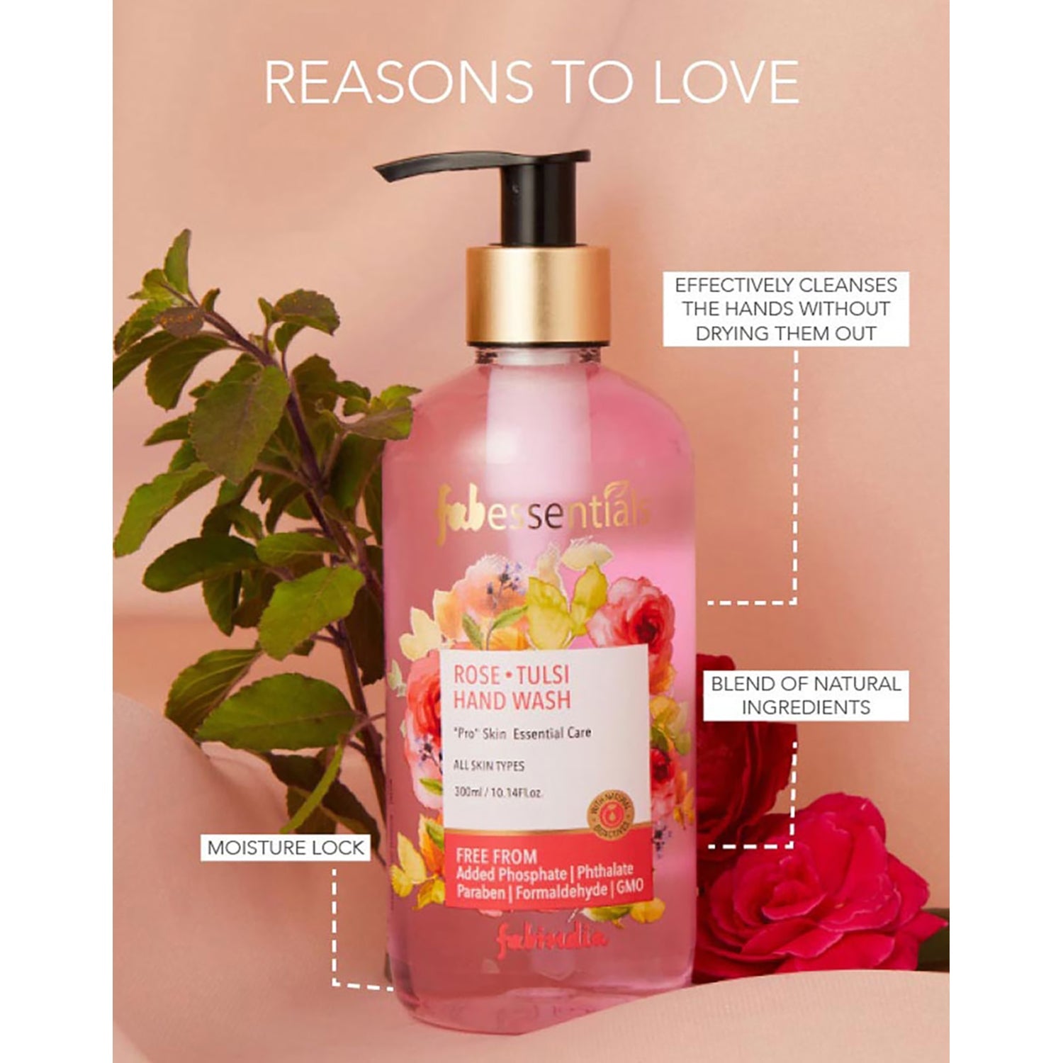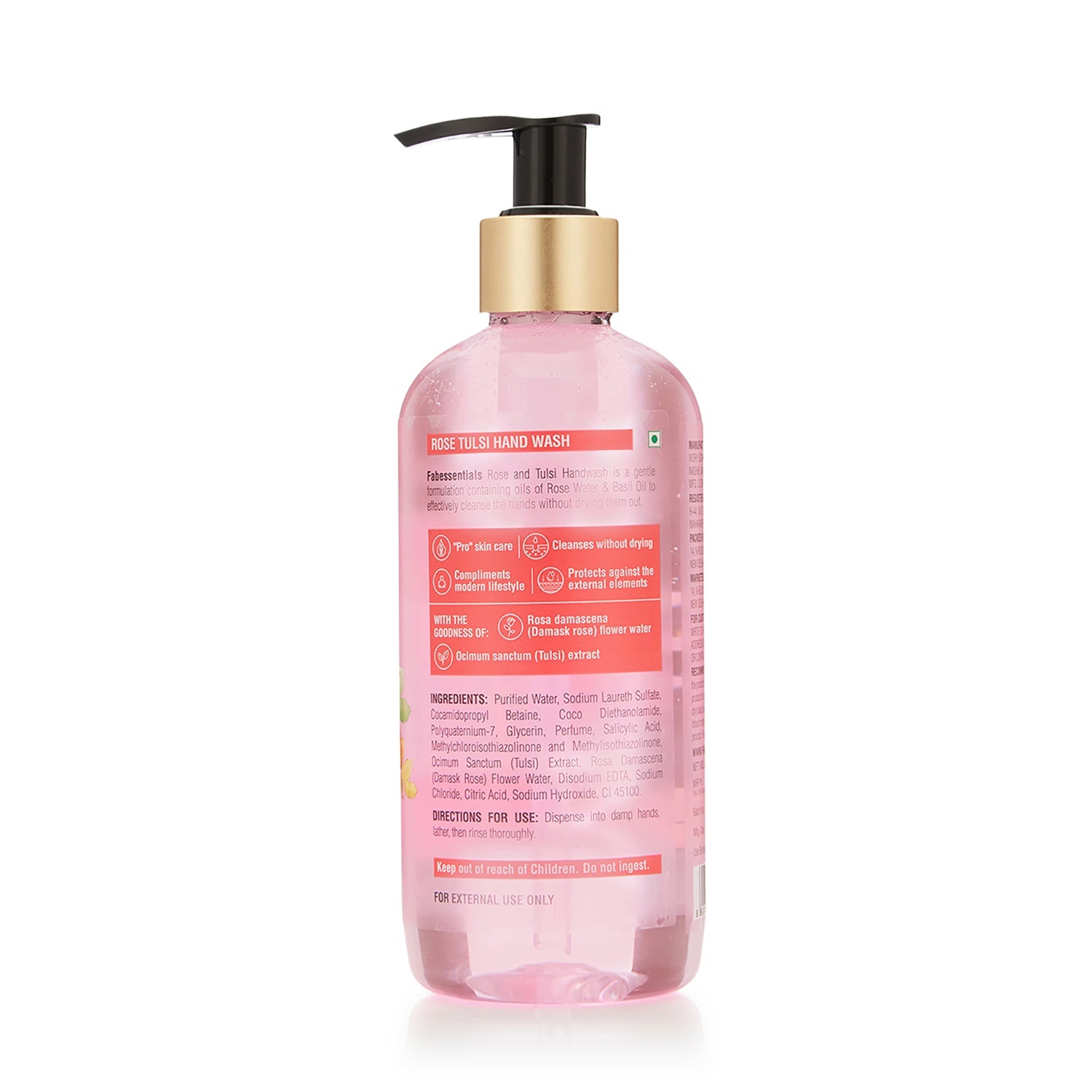Fabessentials Rose and Tulsi Handwash is a gentle formulation containing oils of Rose water & Basil oil to effectively cleanse the hands without drying them out.