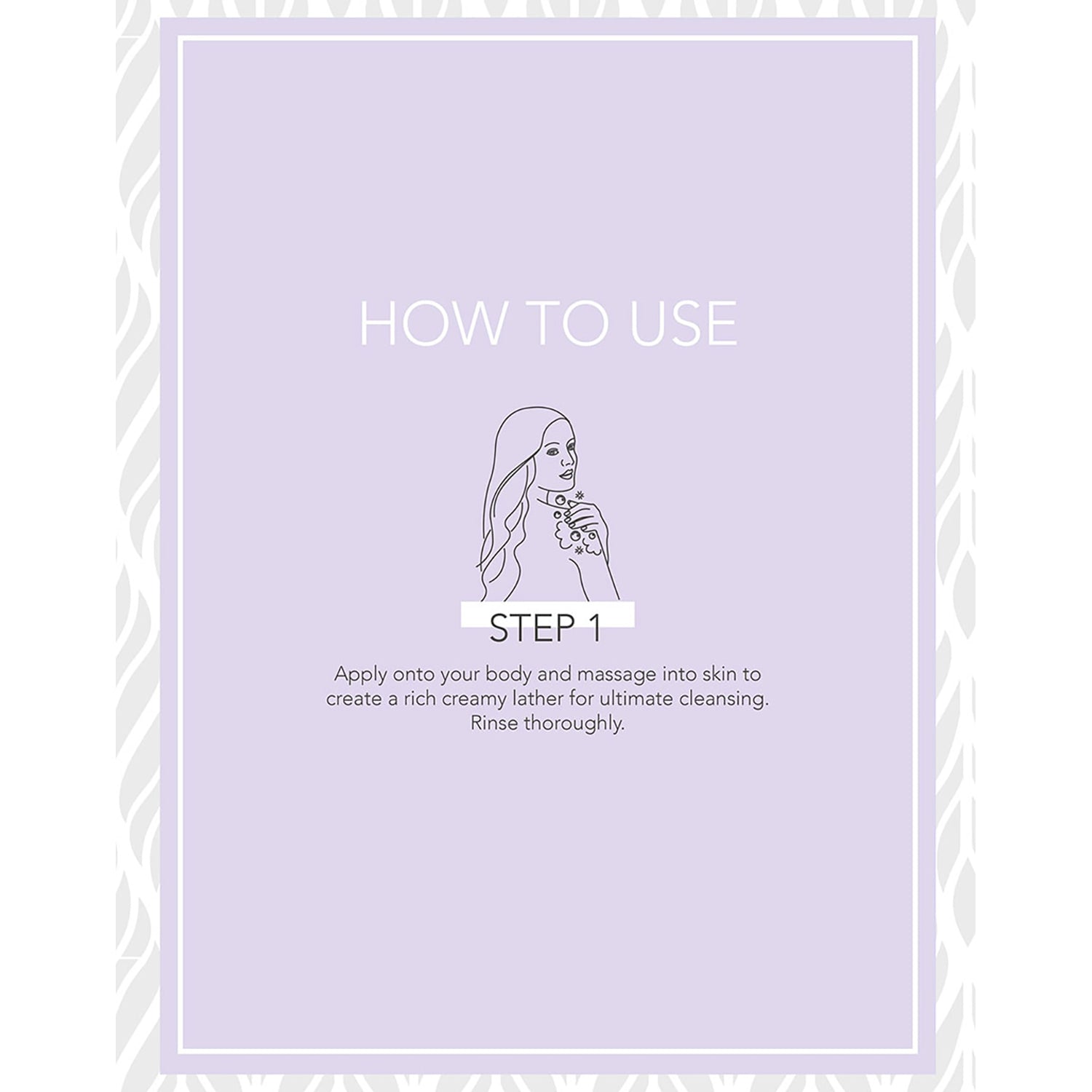 Apply onto your body, or a washcloth. Massage into skin to create a rich creamy lather for ultimate cleansing; rinse thoroughly. For best results, follow with Fabessentails Sandalwood Eucalyptus Saffron Body Lotion.