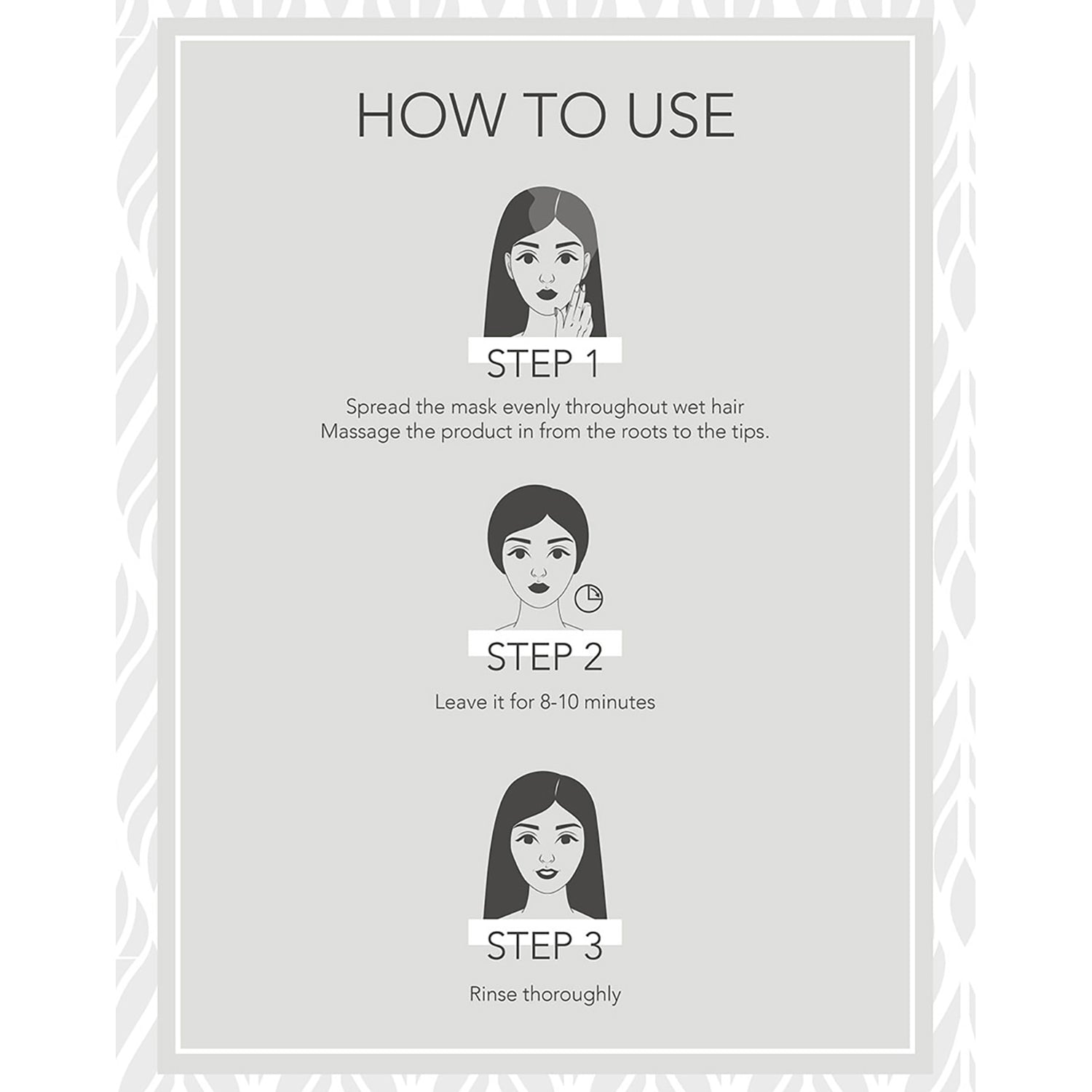 Thoroughly wet the hair & spread the mask evenly throughout the hair. Massage it in from the roots to the tips. Leave it for 8-10 minutes, Rinse off the hair completely.
