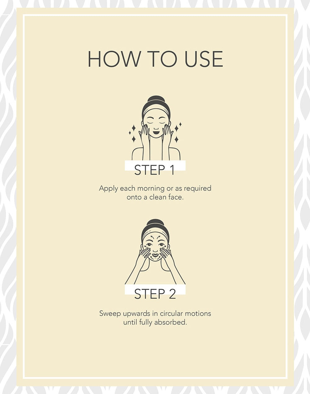 Apply each morning or as required onto a clean face. Sweep upwards in circular motion until fully absorbed. For best results use daily after thoroughly cleansing your face with Wild Rose Wheatgerm Honey Face Wash.