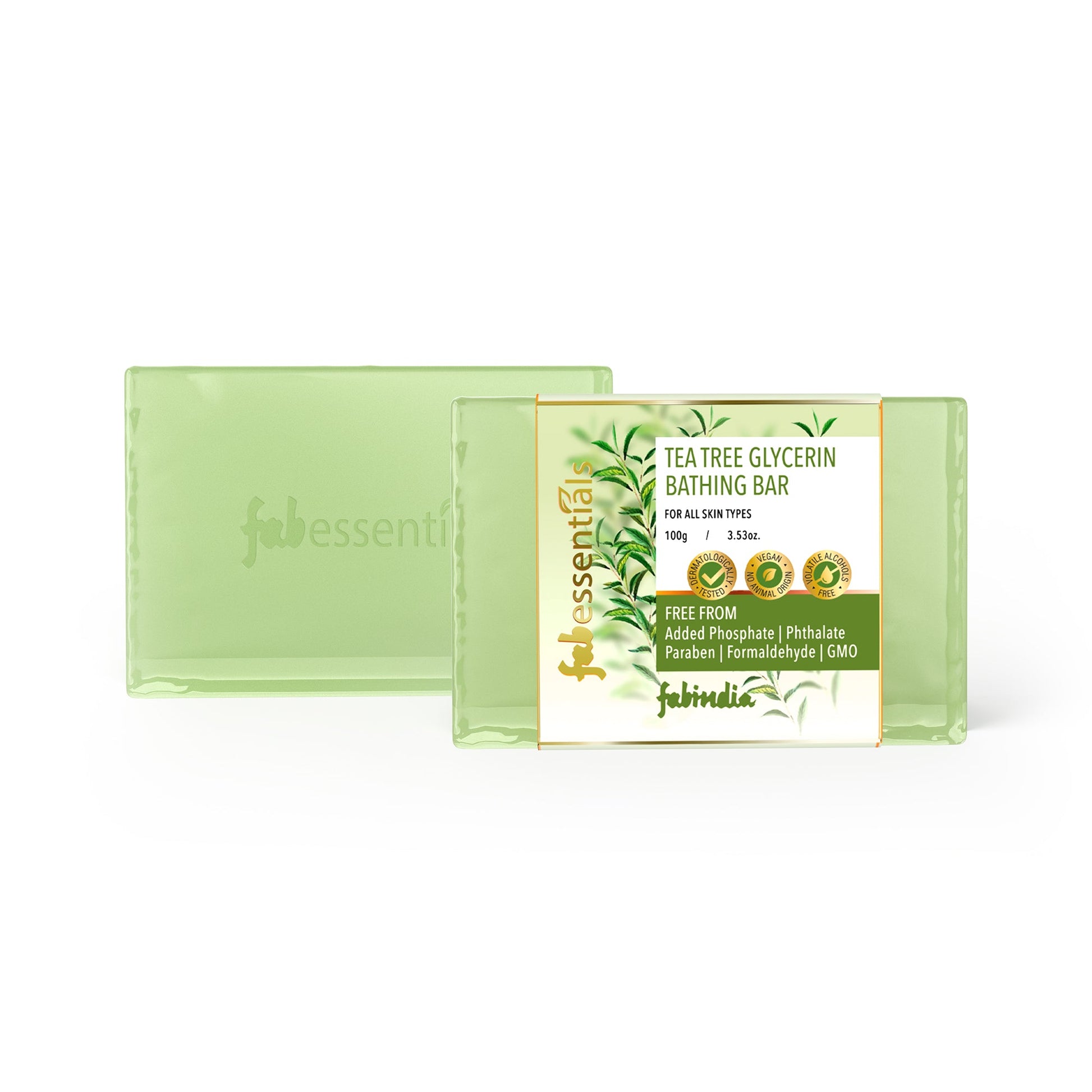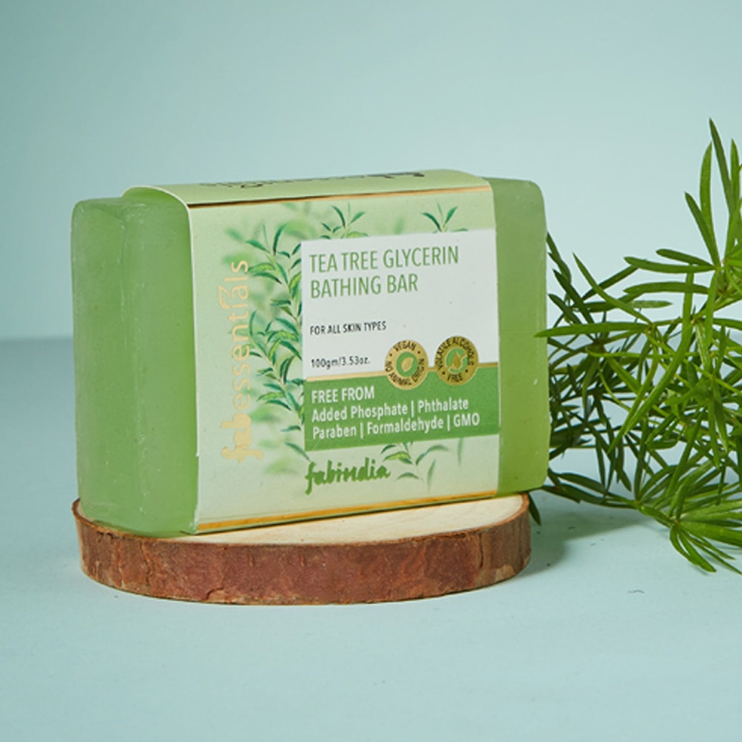 Fabessentials Tea Tree Glycerin Bathing Bar is enriched with the goodness of Tea Tree and Glycerin. Free from toxins, this soap gently cleanses away dirt and grime from your body while retaining skin's natural moisture balance. Tea Tree helps fight and prevent skin breakouts, while Glycerin hydrates and moisturizes skin, and banishes dryness and roughness.
