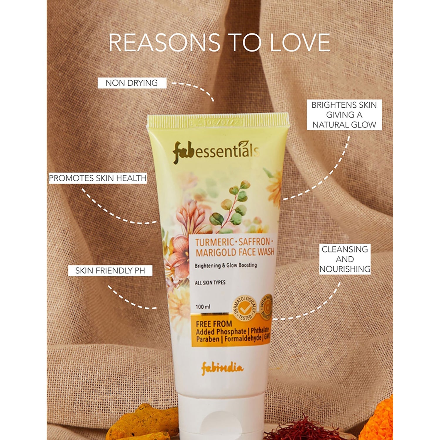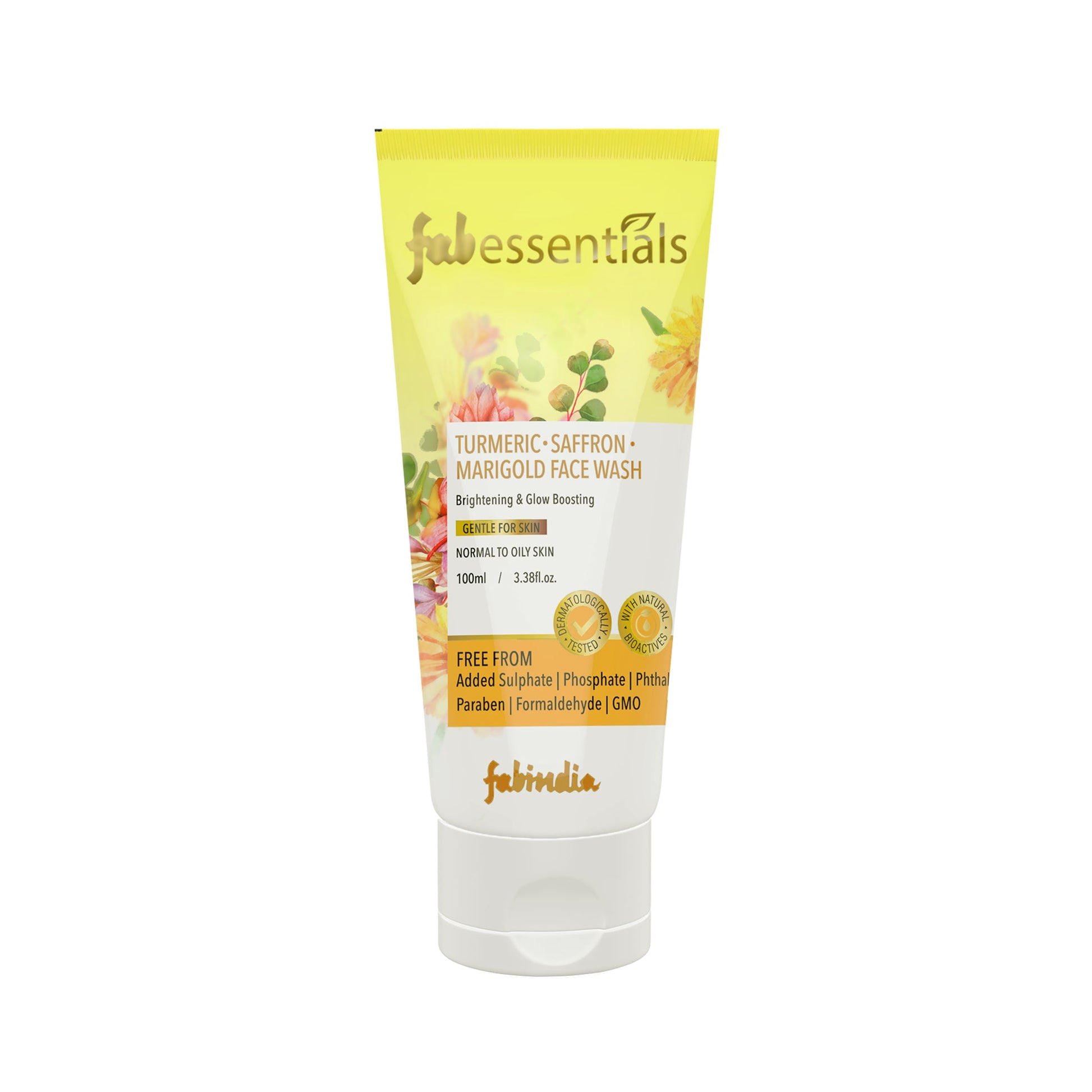 Fabessentials Turmeric Saffron and Marigold Face Wash with potent natural bio-actives is made with Turmeric extract to gently cleanse and detoxify skin. While flavonoid-rich Marigold helps calm skin & antioxidant-rich Turmeric helps restore skin’s natural moisture balance leaving it supple, toned & youthful. Precious Saffron enables a more even and healthy complexion.