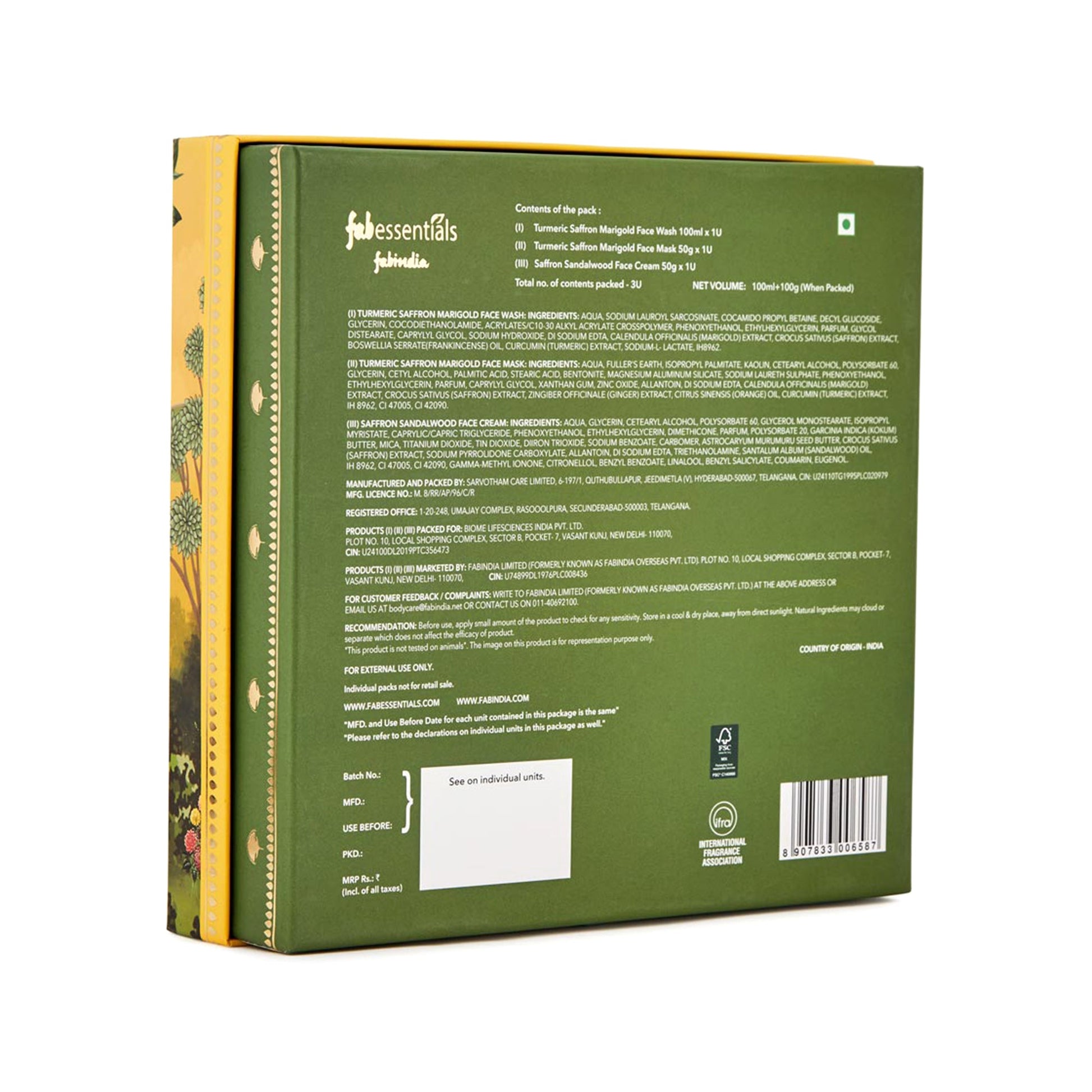 - Experience Luminous Power: Discover the luminous power of Turmeric, the radiant glow of Saffron, the soothing comfort of Sandalwood, and the nourishing benefits of Marigold, all in one gift set.