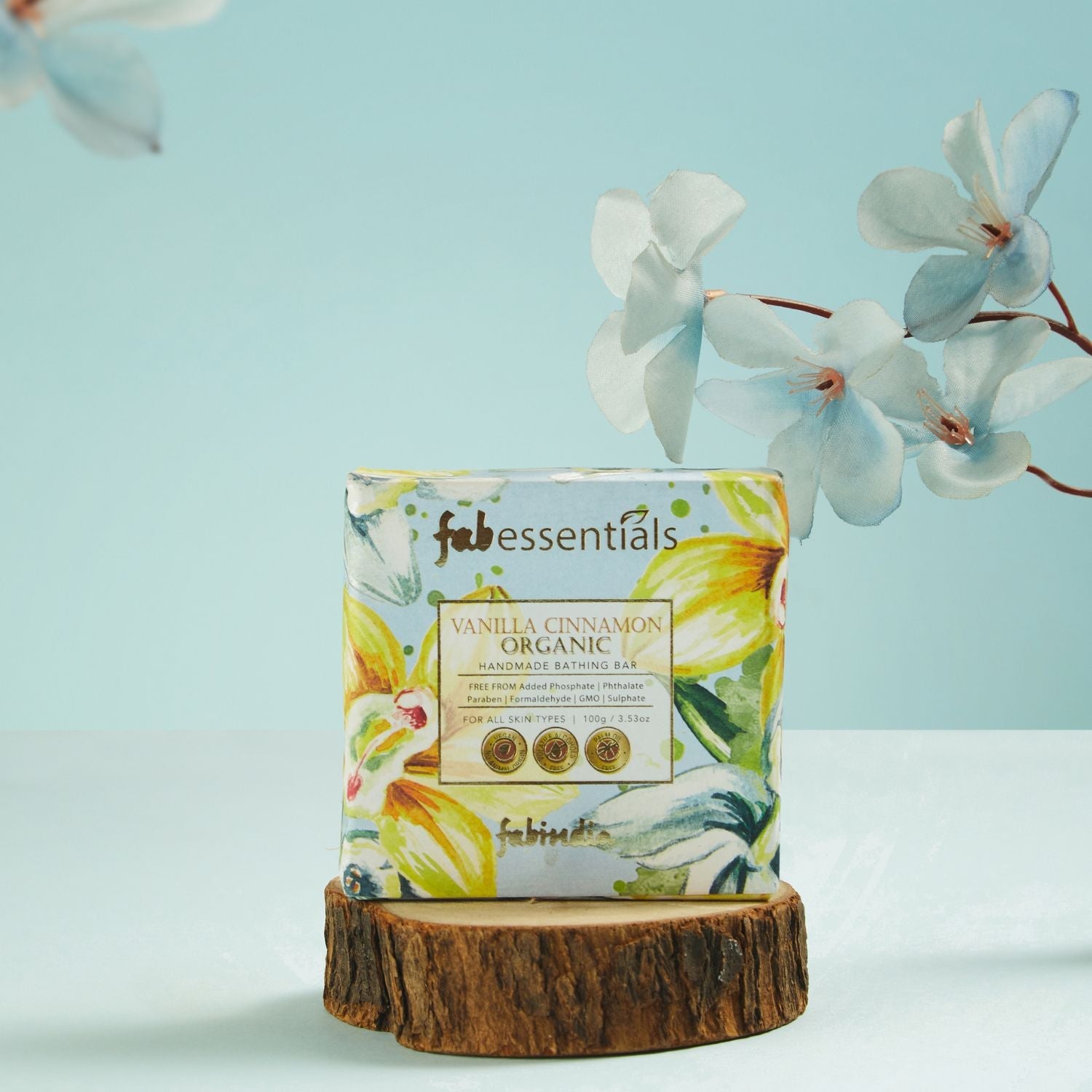 Fabessentials Vanilla Cinnamon Organic Handmade Bathing Bar cleanses the skin with a soft lather. It has the perfect comforting combination of the sweet vanilla and warm & spicy cinnamon. What’s more? Cinnamon has powerful antioxidant and vanilla calms and soothes skin.