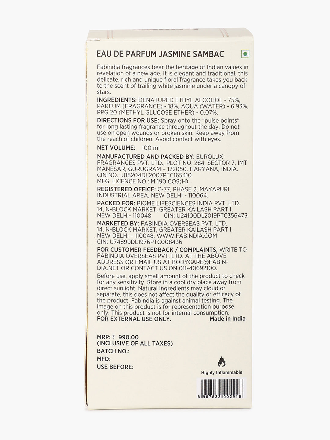 Fabindia fragrances bear the heritage of Indian values in revelation of a new age. It is elegant and traditional, this delicate, rich and unique floral fragrance takes you back to the scent of trailing white jasmine under a canopy of stars.